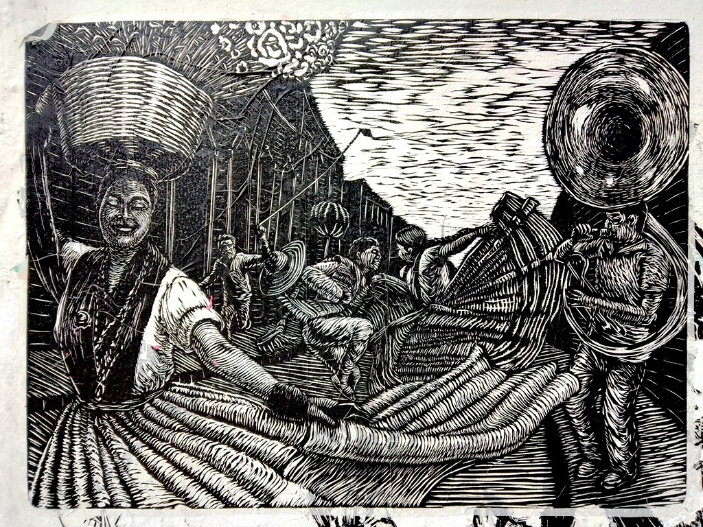 On retrouvera dans les dernières créations de ce collectif qui illustrent cet article, les désormais classiques thèmes révolutionnaires, populaires et ethniques ; de ceux qui ont fait les beaux jours de nombreux collectifs artistiques et ateliers de gravure depuis 2006, tels ASARO, UTARTE ou encore Taller Zapata. C’est d’ailleurs depuis cette année emblématique que l’on note le virage de Oaxaca vers la valorisation d’une activité artistico-artisanale de plus en plus attrayante pour les visiteurs étraners ou nationaux, avec la floraison de nombreux ateliers de gravure autogérés surfant sur la vague du tourisme culturel, puis du tsunami du tourisme de masse et globalisé de type Airbnb.