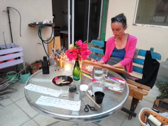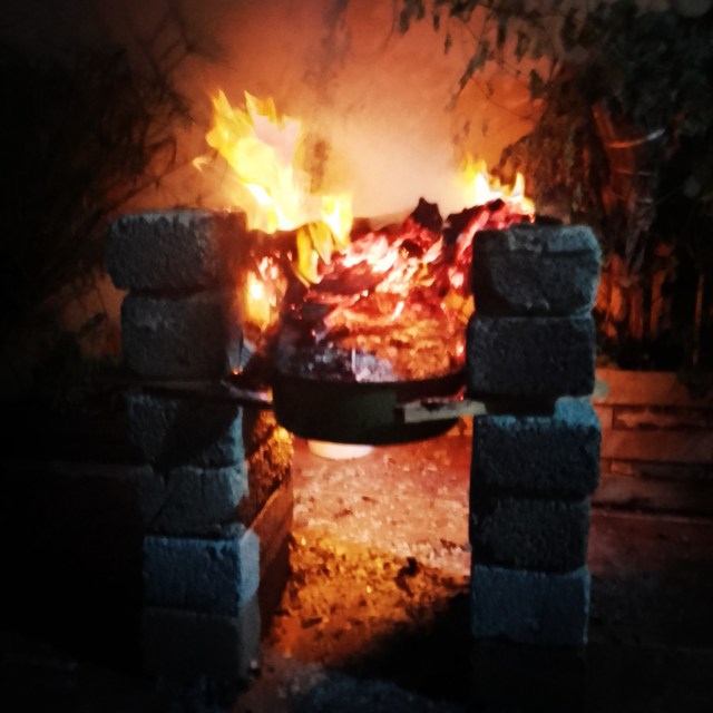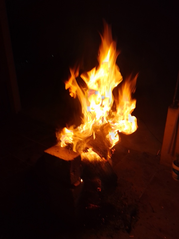 Le rituel des papiers brûlés pouvait commencer, certains dans des enveloppes, d’autres seulement pliés. Un peu comme avec de l’encre invisible, les mots calligraphiés au pinceau prirent une intéressante teinte violacée et cuivrée en se laissant consumer. Peurs et tristesses qui partent en fumée, souhaits sublimés sur les braises incandescentes.