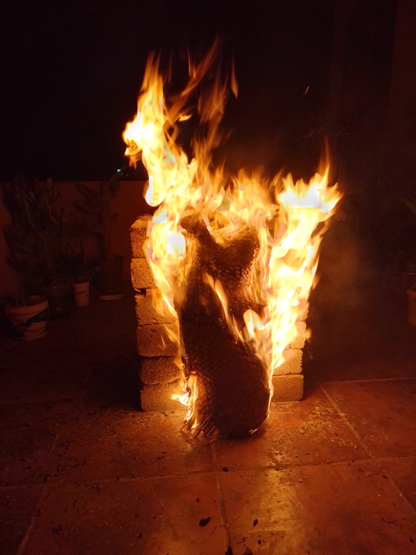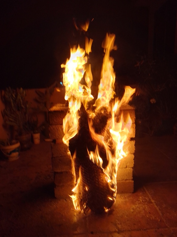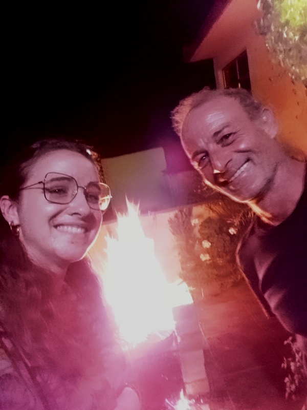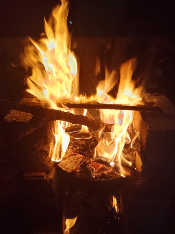 Le lendemain, un dimanche, comme il restait encore beaucoup de bois et d’essences à brûler, vinrent quelques amis. Ce qui était une cérémonie dans l’intimité de nos deux êtres, devint une fogata aromatique. Les graines de pirul, mais surtout les feuilles d’eucalyptus faisaient éclater leurs parfums pour toute la compagnie qui se diverti fort tard. Les deux ou trois jours suivant la cérémonie, je senti des forces agissant au niveau de mes entrailles et dans mon mental. Il me fallu beaucoup boire d’eau pour me réhydrater, certainement du fait du feu mais possiblement aussi de l’alcool !