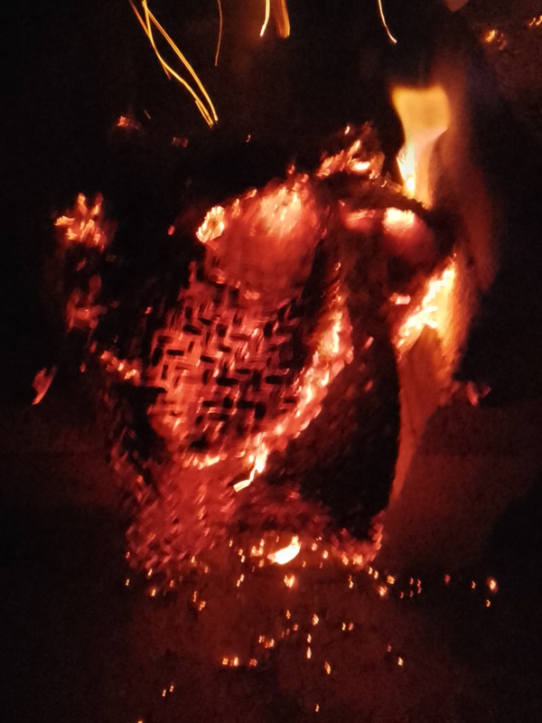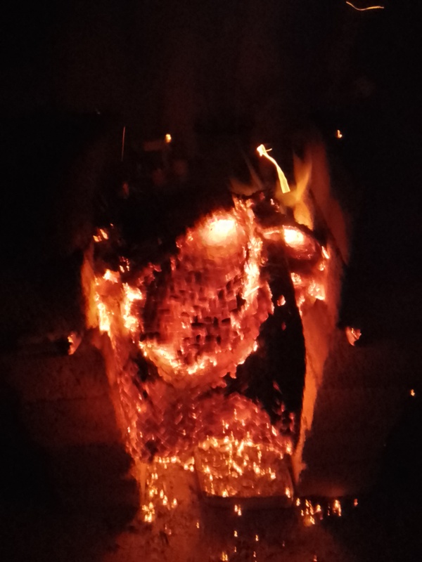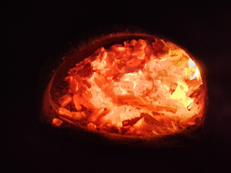 Une fois que le rituel nous sembla accompli et que le feu faiblissait faute de nourriture, une douce fatigue nous gagnait. Pour une première, ce fut une belle performance. Dans son sarcophage d’argile, les braises pouvaient se réduire en cendre en toute quiétude tandis que vers minuit, Morphée nous entourait de ses bras et nous berçait de rêves salvateurs.