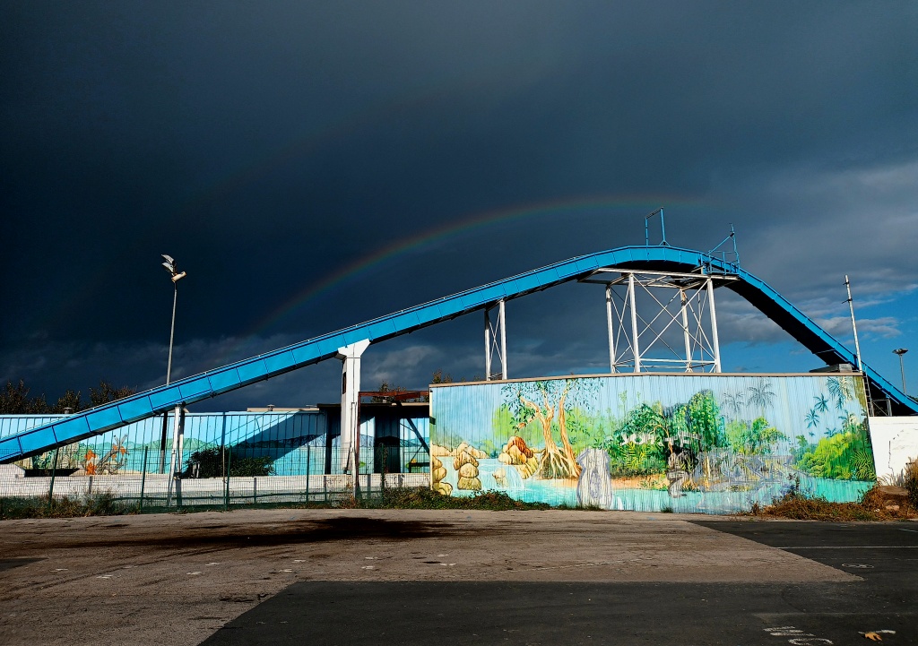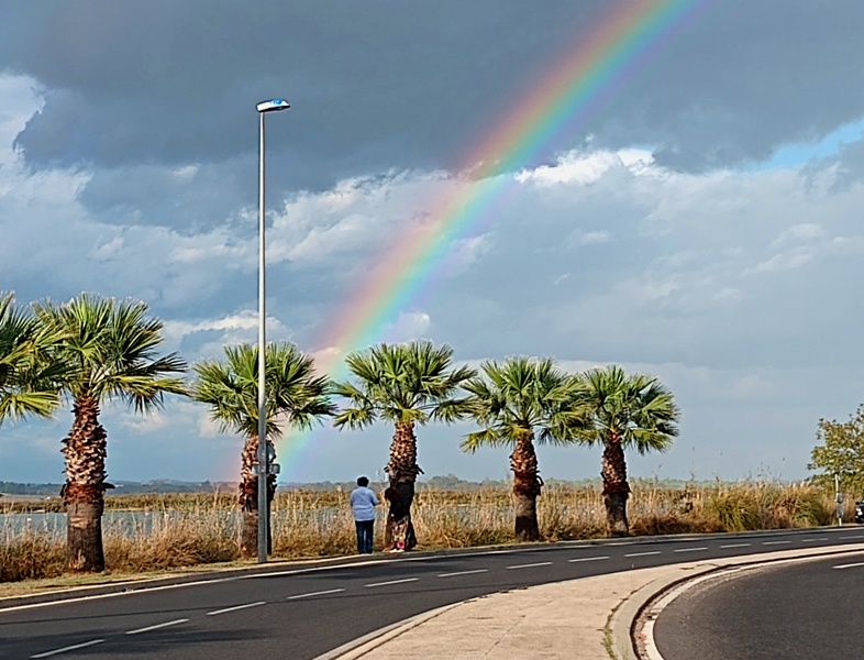 Les pensées s’envolent pendant que le regard plonge un peu partout : la qualité du revêtement de la route, ces troncs noirs et brisés, œuvre d’un incendie récent, un nouvel ensemble d’habitations, une couleur plus vive sur ces ferronneries art nouveau, la netteté matinale sur les collines et quelques brumes qui se dispersent, joli camaïeu de gris-bleu, la douceur inégalée du sable fin. Le corps reprend place dans l’espace, le mental retrouve son aplomb.
