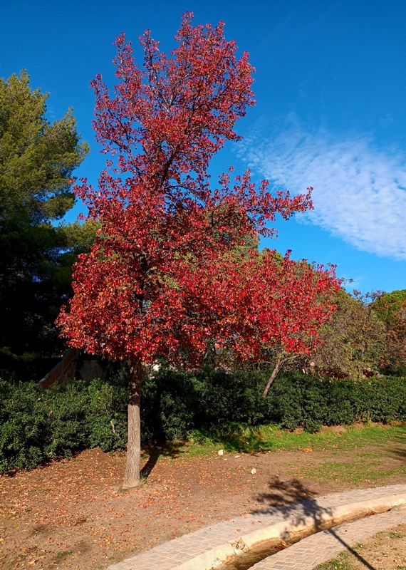 Mystérieusement parmi les arbres nus ;