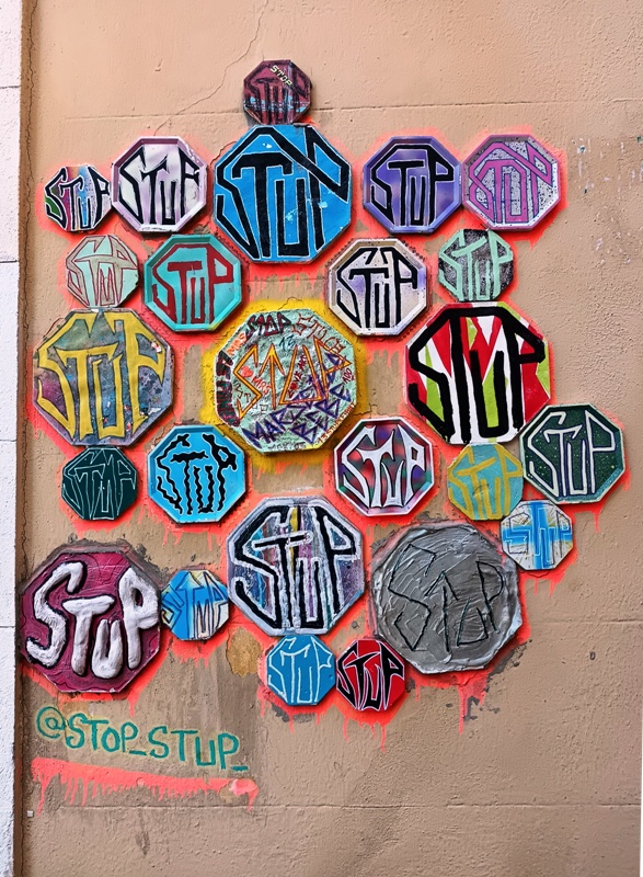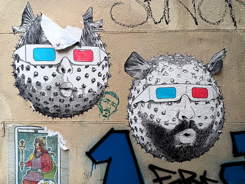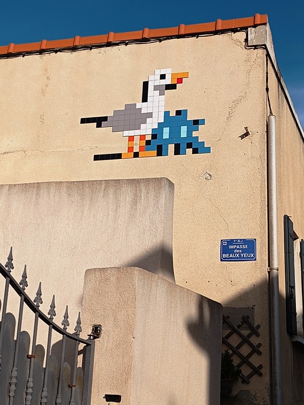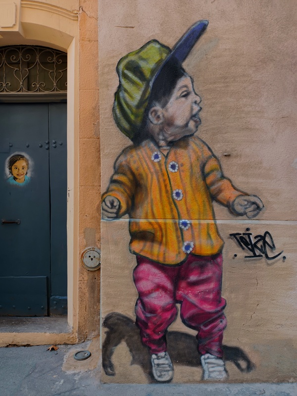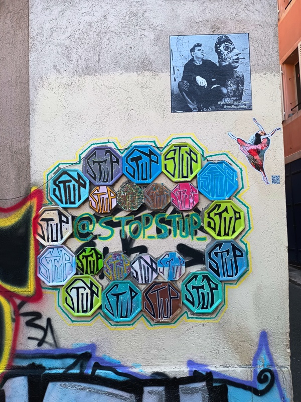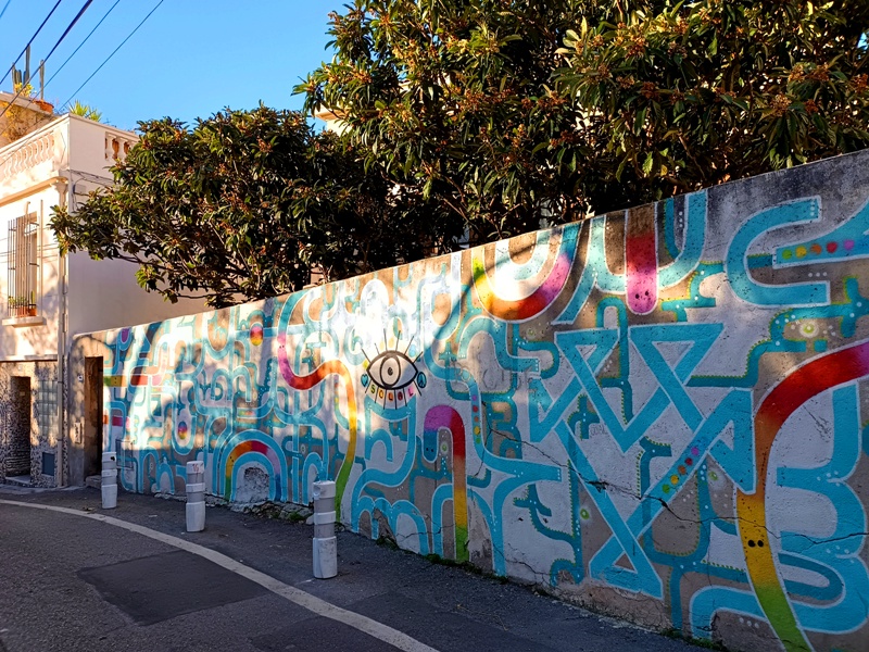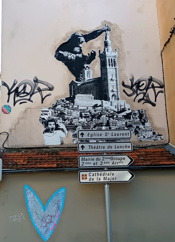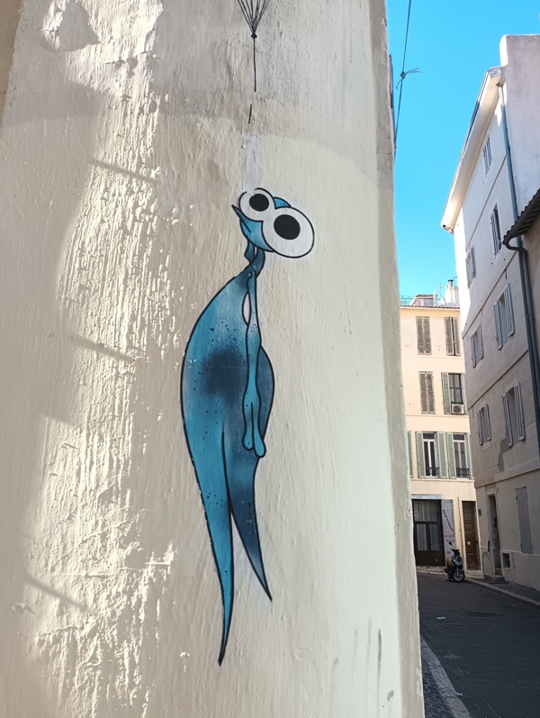 Les œuvres présentées dans cet article en deux parties, du fait de leur quantité et leur qualité, racontent en pointillé ces errances et l’espoir d’un ciel plus bleu, d’une herbe plus verte ici plutôt qu’ailleurs. Elles nous montrent aussi l’extraordinaire inventivité des artistes de street art qui viennent de partout pour laisser leur touche à Marseille. Elles sont toutes situées dans le Panier pour la première partie. Pour cette deuxième partie, elles se trouvent principalement dans les deux quartiers de la Belle de Mai et du Panier qui se touchent, quelques-unes dans celui de La Plaine, au Vallon des Auffes ou vers le parc Puget d’où on a une très belle vue sur le Vieux Port.