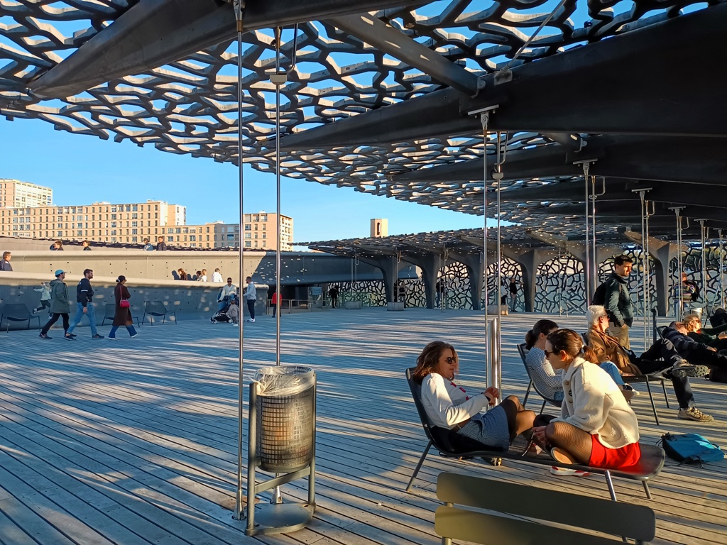 Photographiquement parlant, ce lieu est très attirant et les selfies réalisés sous cette arche vif argent ne se comptent plus depuis dix ans. L’Ombrière est devenue un point de repère marseillais, certes moins typique que Notre-Dame de la Garde, la Vieille Charité, l’Opéra, le Palais Longchamp ou la gare Saint Charles, monuments d’un autre temps, vestiges d’un autre art de vivre. Elle est encore toute jeune, de la même génération que le MuCEM ou le quartier Euroméditerranée et finira par devenir elle aussi emblématique de son époque.
