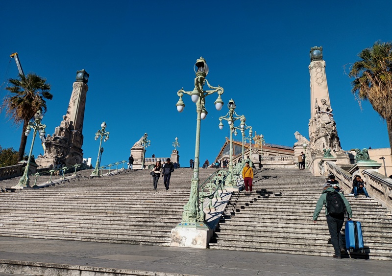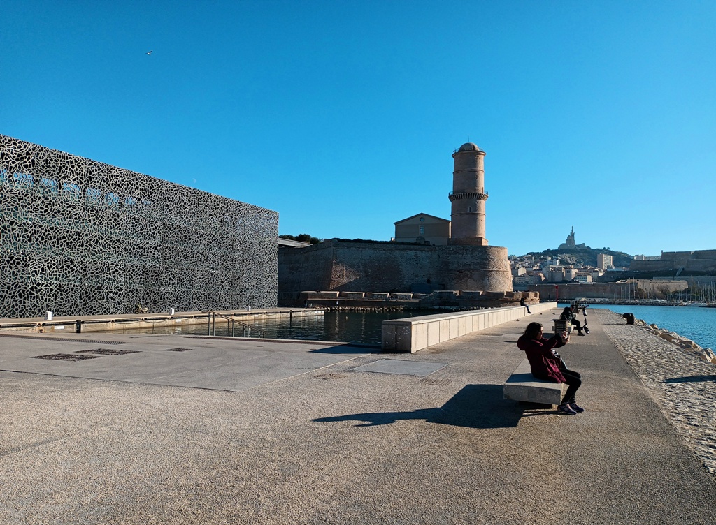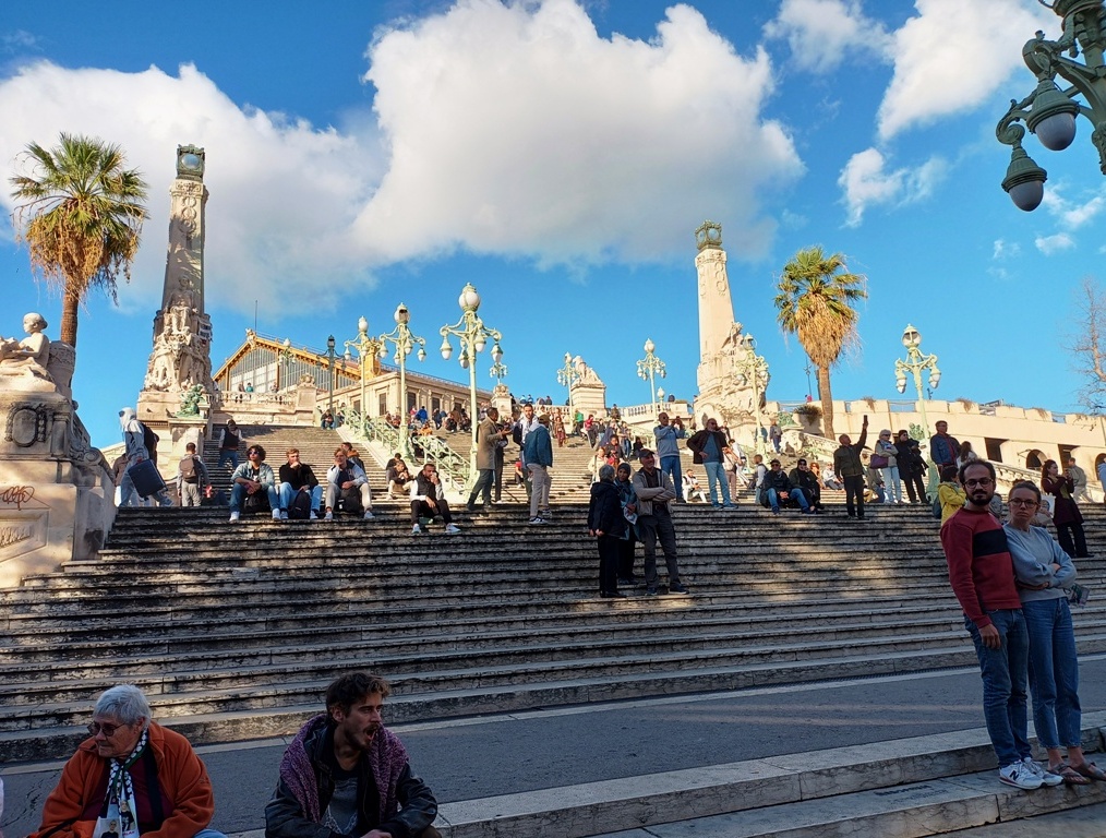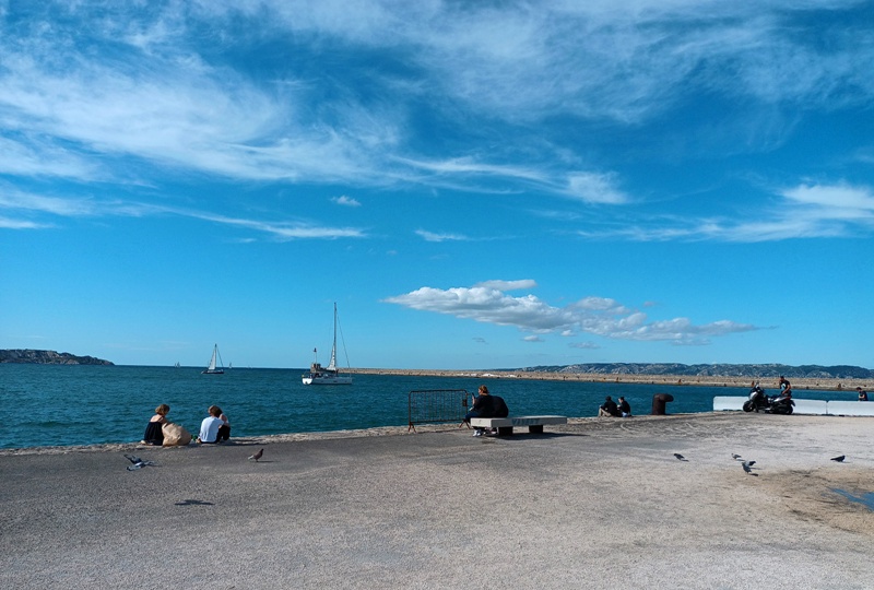 Suivant les conseils d’Antonella Fiori dans son recueil de poèmes, Tenir le pas gagné, j’ai arpenté pendant les trois derniers mois de 2023 cette ville avec mes deux pieds, mon cœur et mes deux yeux. Pour rapporter ici des éclats rafistolés de mes impressions marseillaises. J‘ai aussi laissé trainer mes oreilles. Tenir signifie en langage freudien ne rien céder quant à son désir, continuer d’avancer, mais pas à pas. Car si la cité résiste aux penchants mélancoliques et semble être entrée dans une phase d’animosité collective diffuse, elle se donne à voir aux femmes et aux hommes au regard vif, à la volonté bien affutée. Un air grandiose, un fond poétique n’ont pas quitté cette ville, c’est toujours cela de gagné !
