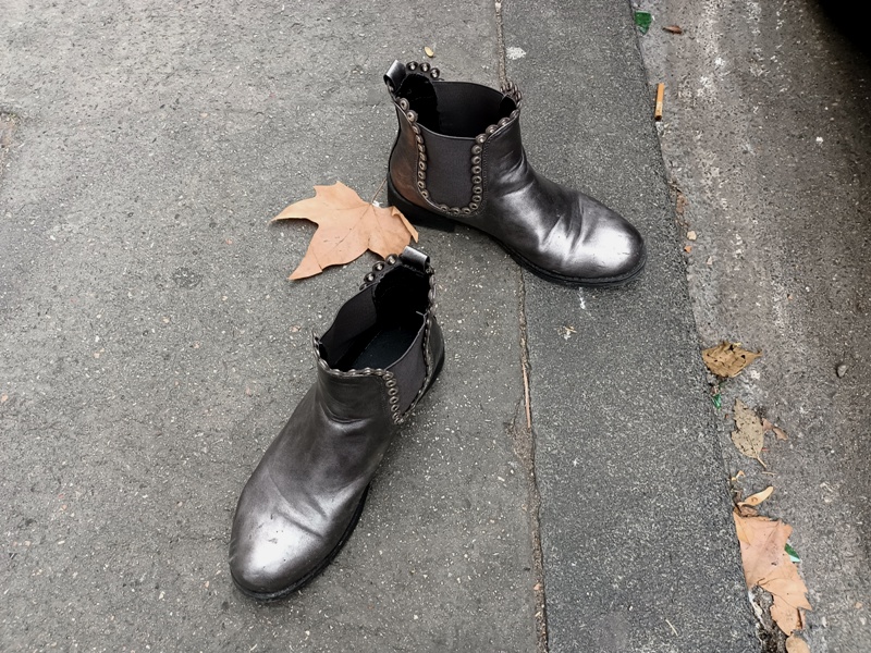 Un agent de nettoyage fait s’éparpiller les feuilles de platanes craquantes sous les pas et des emballages plastiques de toute sorte, à gauche puis à droite de sa silhouette. Il semble manier son souffleur comme un jouet léger. Les déchets organiques, inorganiques s´élèvent d’un mètre ou deux et retombent dans son dos tandis qu’il avance dans un mouvement mécanique, puis disparaît.