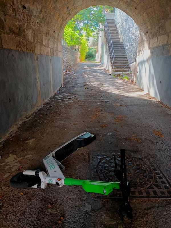 La ville, dopée par son succès promotionnel et l’arrivée de nouveaux habitants, est en phase de récupération maladroite. Le tracé du tramway se superpose pratiquement à celui du métro (composé de deux lignes, 1 et 2 qui se croisent aux stations place Castellane ou gare Saint-Charles, ce qui en fait un des réseaux de métropolitain les plus simplistes). Le réseau de bus ne peut pas résoudre à lui seul cette évidence et cette absurdité. Ni l’usage des trottinettes ou des vélos électriques, dont les stations fonctionnent ou pas, cela dépendant du vandalisme et du je-m’en-foutisme très répandus ici. Sans oublier d’évoquer en toile de fond une autre forme d’incivilité chronique, avec des véhicules partout mal garés qui bloquent le passage des piétons sur les trottoirs, les écarts nombreux au code de la route et le peu de cas des personnes âgées ou à mobilité réduite en ville. Marseille dispose de peu de voies cyclables malgré la Cannebière réaménagée et le magnifique parcours offert aux piétons et aux vélos sur la corniche.