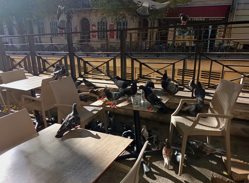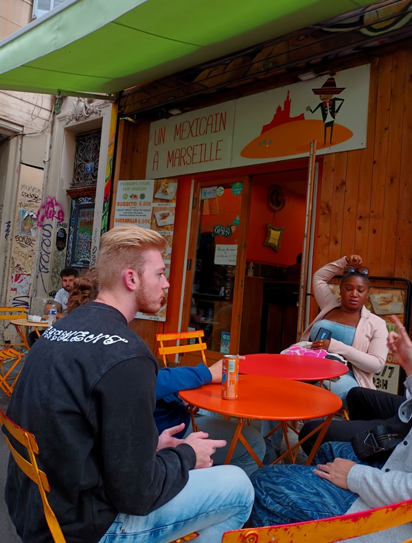En parallèle, s’affiche le mal-être de déracinés comme les « sans-papier » et les migrants économiques, qui ont fait par exemple de l’esplanade Saint Charles et des environs leur principal lieu de ralliement. La facilité de rester en contact avec son pays d’origine et ses familiers via les smartphones et réseaux sociaux rend leur intégration moins vitale. J’ai aussi pu constater sur les places, dans les rues aux odeurs de kebab, de diesel et de shit, le désespoir, la violence à fleur de peau, l’homophobie et le machisme d’hommes d’origine maghrébine, se sentant apparemment bien installés à Marseille. Sans vouloir prendre la pente si facile du racisme, ce sont des comportements qui ont été souvent évoqués dans des discussions avec différents types de personnes, dont des Françaises et des Français d’origine étrangère, ouverts et soucieux d’harmonie, attirés ici par un esprit de modernité et de tolérance que ne leur offre pas leur pays d’origine. Ils, elles regrettent et condamnent ces attitudes qui jouent en défaveur de l’image de l’étranger, de l’étrange immigré venu d’ailleurs pour des raisons forcément un peu barbares et envieuses… et qui fait le lit des idées d’extrême-droite, le succès du RN dans les médias.