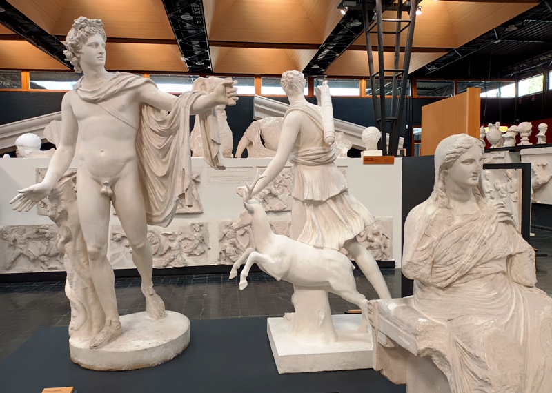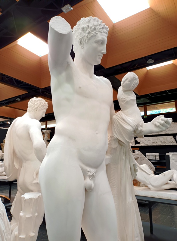 Seul, je suis retourné au Musée des Moulages de l’Université Paul Valéry, riche en bas-reliefs et sculptures en ronde bosse, d’après des antiques datant principalement de l’époque crétoise/grecque archaïque jusqu’au classicisme de l’école d’Athènes. Il a été rénové, les plâtres ont été dépoussiérés et il reste aujourd’hui une référence pour la reproduction de chefs-d’œuvre. Ceux-ci illustrent magnifiquement le génie grec et l’influence hellénistique, dans un amoncellement délicat et très soft de témoignages archéologiques, une orgie de corps figés, certains diaphanes et presque fantomatiques. Figé à vrai dire n’est pas le bon mot, car on est saisi par l’impression de vie et de mouvement que dégagent chacune des œuvres. Le moulage est également tout un art. De plus, c’est toujours rassurant de constater que l’essentiel d’un passé est conservé quelque part.