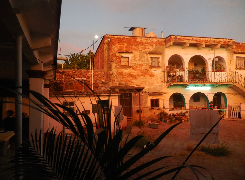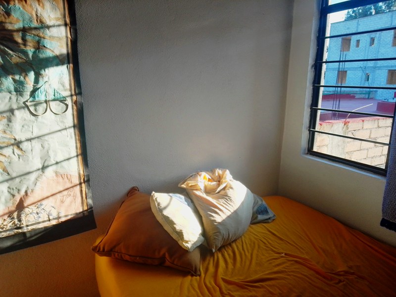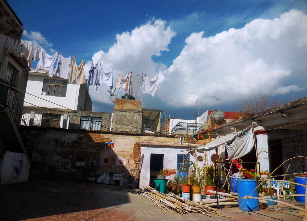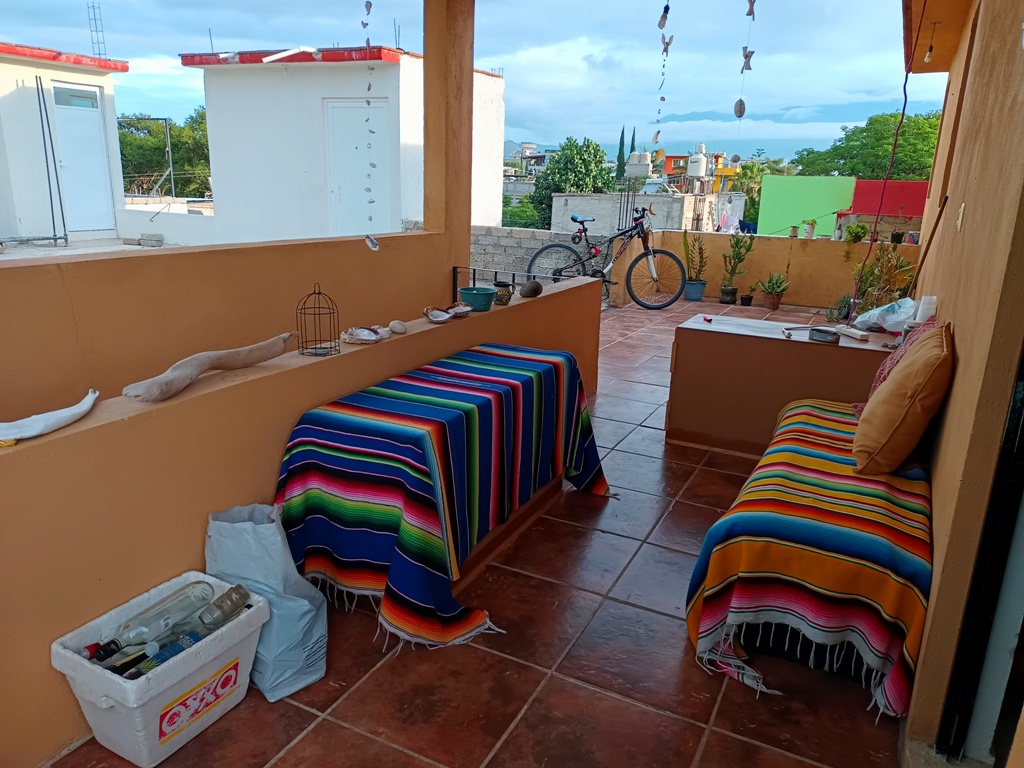 J’ai donc fait une sélection plus réduite de certains lieux que j‘ai habité dans l’État de Oaxaca, où j’ai vécu au total cinq années heureuses et édifiantes. Premièrement en 2018-2019 à Huatulco, sur la côte pacifique ; ensuite dans la capitale, Ciudad de Oaxaca, de 2019 à 2023. Maison en convivio, studio et appartements, mais aussi des posadas (gîtes) à la plage, à la montagne, où j’aimais aller me reposer quelques jours, à l’écart de la frénésie urbaine partout présente au Mexique. C’est dans l’Espacio Artistico Zicotencatl – que nous dénommions « Tchernobyl » entre les habitants du lieu – situé dans le centre-ville colonial de Oaxaca que ce situent les premières photos sélectionnées ci-dessous et qui m’évoquent de beaux souvenirs.