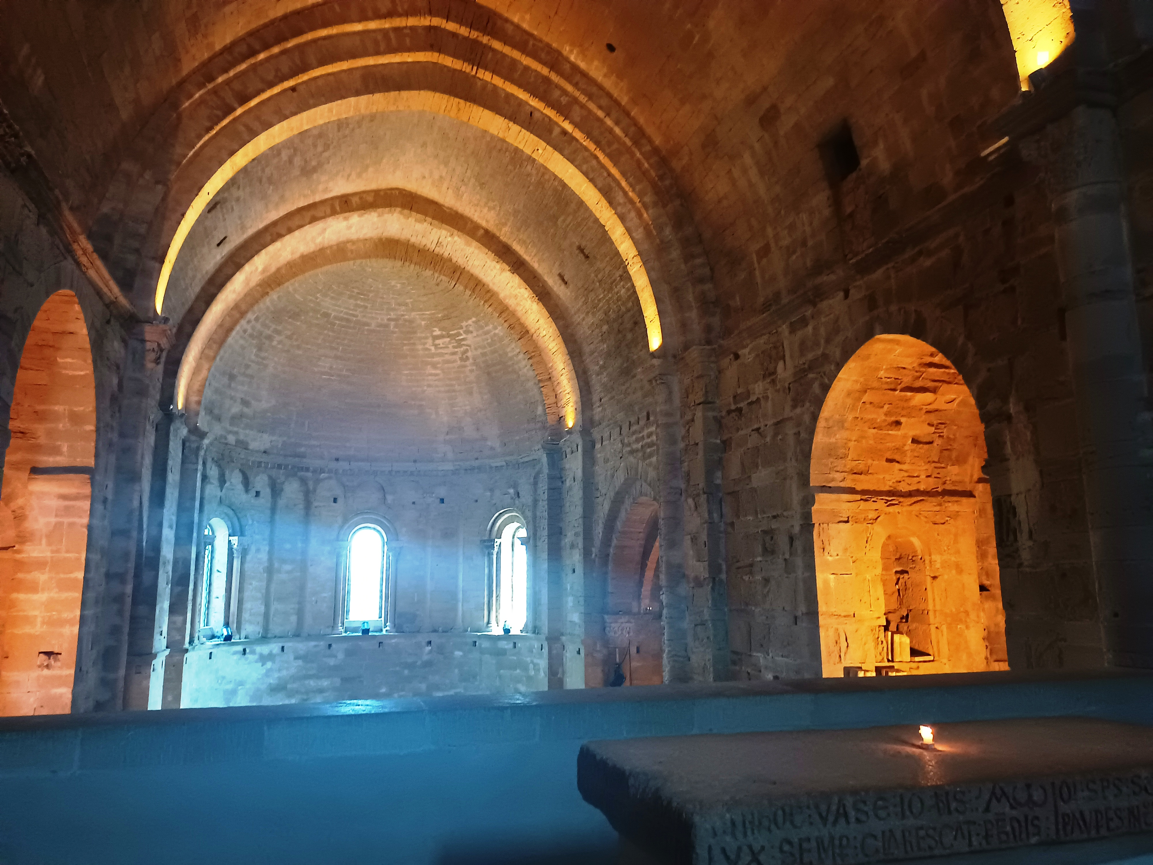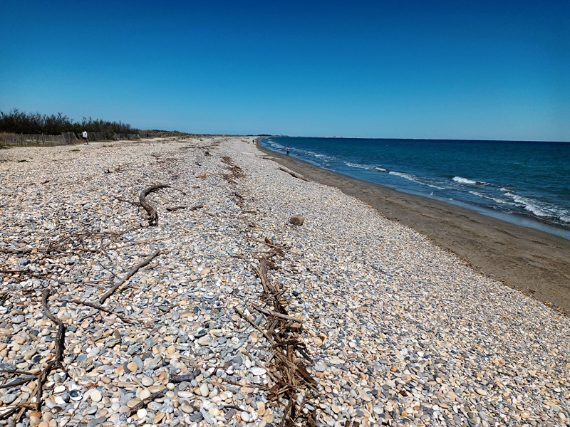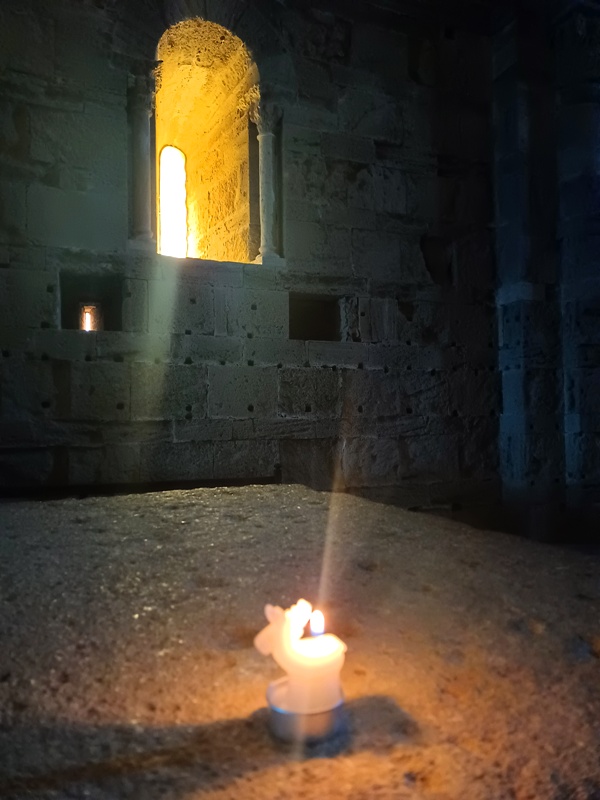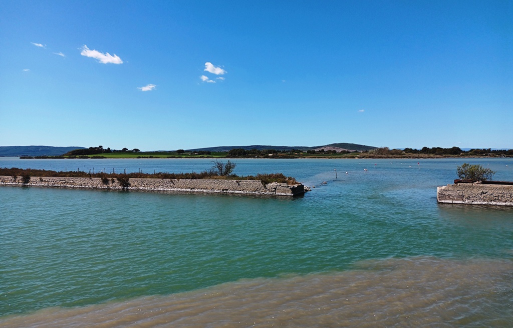 La cathédrale de Maguelonne, imposante d’élégance et de sobriété romane, surplombe l’étang de l’Arnel depuis plus d’un millénaire. Depuis que Les compagnons de Maguelonne, un restaurant gastronomique a été ouvert dans une des annexes par l’association du même nom. Celle-ci est une ESAT qui accompagne les personnes en situation de handicap en leur proposant des activités professionnelles et l’hébergement, la petite île draine plus de visiteurs. Dans la douce pénombre rafraichissante de la cathédrale, de plus en plus de lumignons sont allumés aux pieds de la statue en plâtre de la Sainte Vierge datant de l’époque baroque. Ses deux bras font un geste d’accueil aux pèlerins ou d’imploration pour le pardon divin, mais restent amputés de leurs mains. Dans le parc boisé de pin et agrémentés de massifs d’acanthes qui entoure la divine demeure, des paons bleu-vert et blancs lancent régulièrement leur cri plaintif qui s’entend des lieues à la ronde.