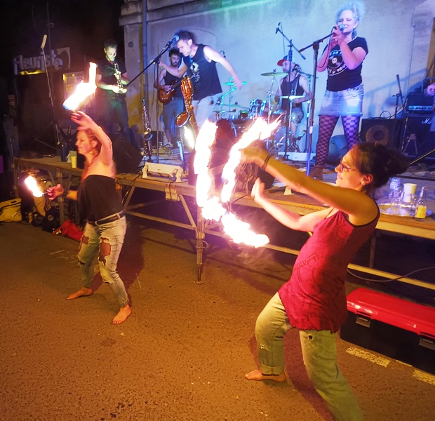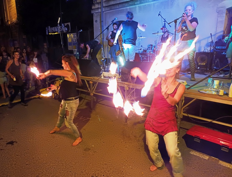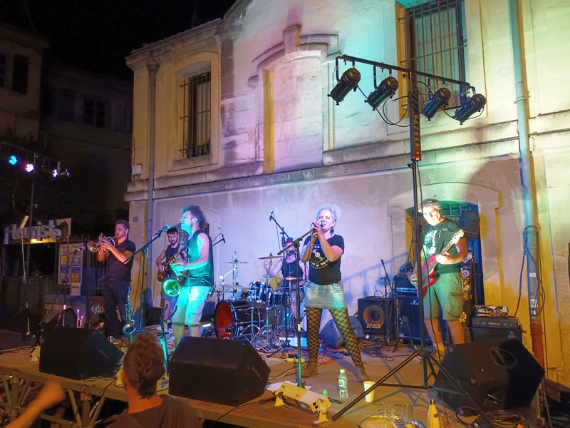 À l’occasion de la fête de musique à Sommières, je suis allé voir, sur une proposition de mon amie Rafa, nymphe aquatique à ses heures, une installation dans le beau village d’Aubais dans le Gard, où coulent le Vidourle, le Lissac et le ruisseau de Gamenteille. Riche bourgade entourée de vignes et de manades, des fêtes taurines y sont organisées chaque année. C’est aussi le lieu d’où est originaire et vit le peintre Claude Viallat, né dans la grande ville voisine de Nîmes en 1936. Il est l’un des membres fondateurs du groupe pictural Supports/Surfaces en 1969. Cultivant des liens avec le courant de l’Abstraction Lyrique, Claude Viallat est connu pour ses motifs répétitifs, des impressions multicolores en forme d’éponge abîmée sur grandes toiles sans châssis.