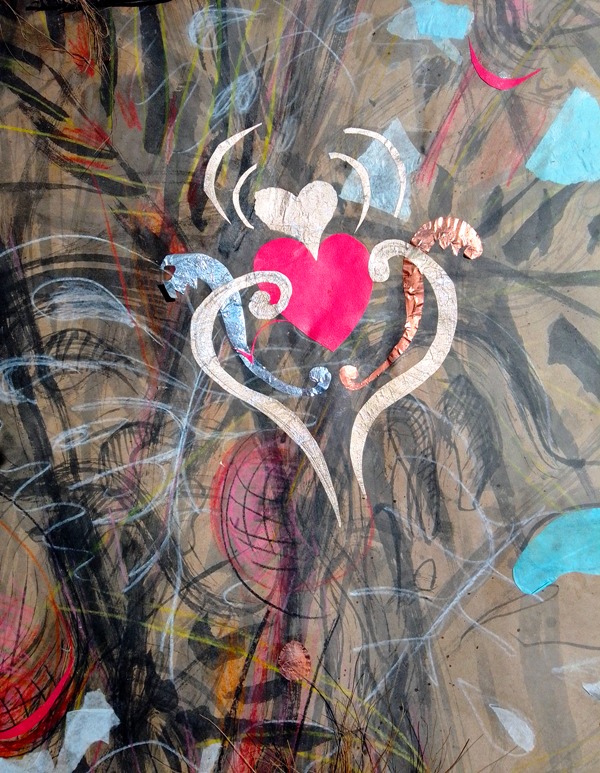 « La vie en rose », peinture sur kraft, collage et assemblage – Florent Hugoniot 2021
