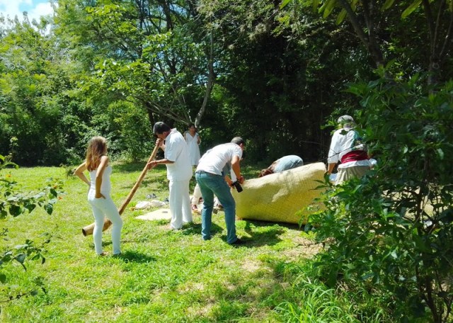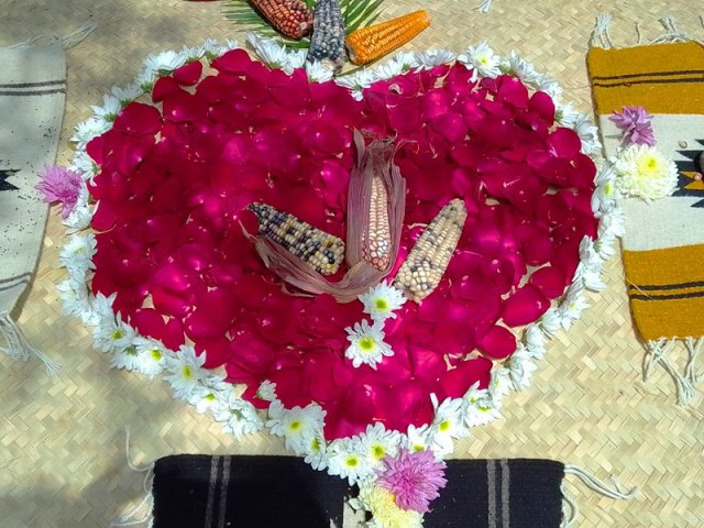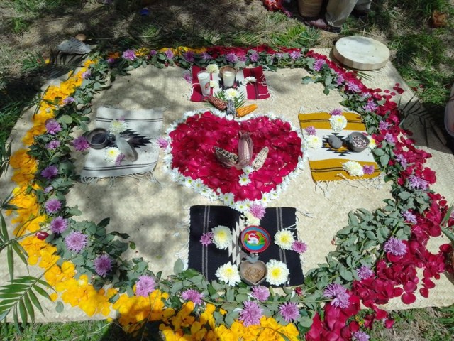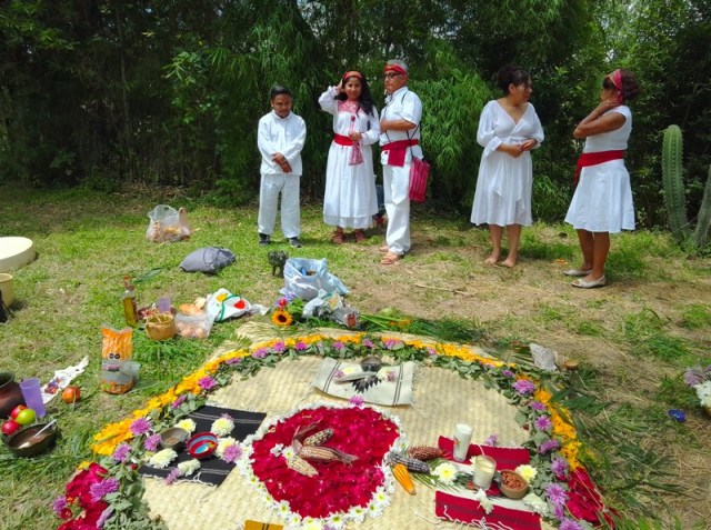 Concernant la cérémonie elle-même, quoi dire sinon qu’elle était très belle, vibrante et paisible, les photos parlent d’elles même. Elle fut célébrée en hommage à la Nature qui, après avoir tant travaillé pendant la saison des pluies, se prépare à entrer en période sèche et fraiche, les énergies redescendent progressivement au sol et vers l’inframonde ; également en l’honneur du soleil qui passe un cap au moment de l’équinoxe d’automne, puisque les journées deviennent plus courtes que les nuitées, jusqu’au solstice d’hiver vers le 21 décembre.