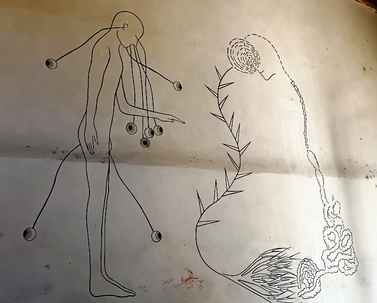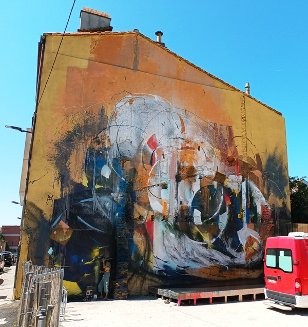 Cependant, près de la gare routière située dans le prolongement de la gare SNCF Matabiau, j‘ai vu quelques œuvres intéressantes à Place Commune. C’est un lieu d’urbanisme transitoire installé dans le quartier de Bonnefoy, un espace culturel alternatif ouvert dans cette zone populaire en partie en friche, en voie de réhabilitation et possiblement voué à la boboïsation. C’était juste à mon arrivée et je me suis dit : « chouette, je vais me régaler, la récolte sera bonne » !