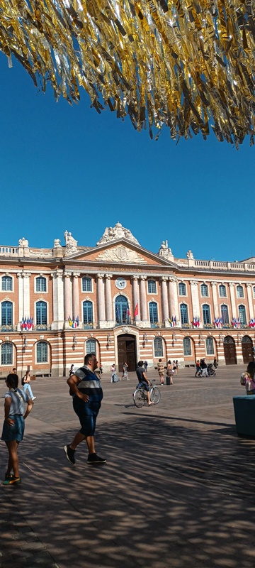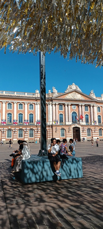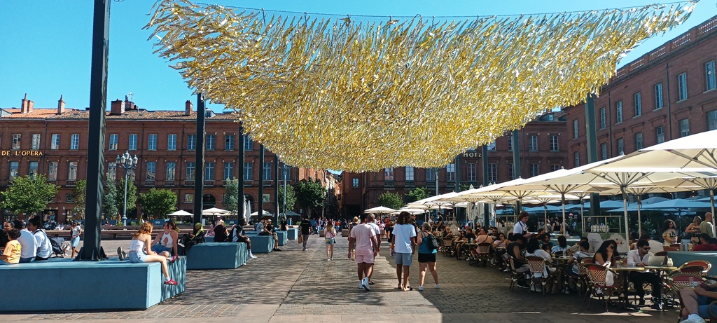 Sur la place du Capitole très touristique, une installation aérienne, mouvante et dorée avec de beaux effets d’ombre portée m’a rappelé le Mexique. En complément, Toulouse plage m’a offert quelques activités physiques (ateliers de respiration yoga, cardio, streching) et une ambiance plus relax et sportive. J‘ai bien aimé les Toulousaines et Toulousains, avenants, polis, mais aussi directs et sans fioriture.