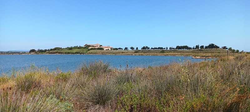 La cathédrale de Maguelone, imposante d’élégance et de sobriété romane, surplombe l’étang de l’Arnel depuis plus d’un millénaire. Du fait de sa situation géographique tout au bout de la commune de Villeneuve-lès-Maguelone, en lévitation entre ciel et son miroir d’eau, elle est restée à l’écart du flot touristique estival. Mais maintenant que Le Comptoir des Compagnons, un restaurant gastronomique, a été inauguré dans une des annexes par l’association Les compagnons de Maguelone (ESAT, Établissement de Service et D’aide par le Travail) et qu’a été ouvert un deuxième accès au site, sur le chemin du petit train qui fait le trajet pour aller à la plage en le contournant, depuis la passerelle qui traverse le canal du Rhône à Sète, la petite île draine davantage de visiteurs.