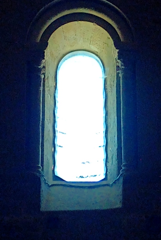 « Dans une esthétique minimale et sublime, Robert Morris reproduit à Maguelone l’onde concentrique que produit un caillou tombant dans l’eau. Les dix-sept vitraux en verre thermoformé, dans les tons bleu maritime ou miel ensoleillé, font écho à l’environnement lacustre et méridional de l’édifice. Aucun motif religieux ici, mais une ode lumineuse et méditative à la nature comme un acte de communion avec les paysages alentour.