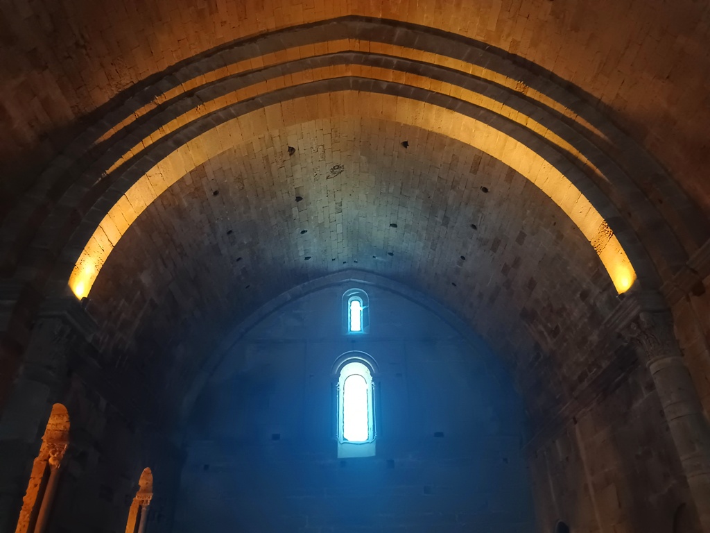 La voute sur croisée d’ogives résulte d’expériences antérieures au XIIe siècle et offre une meilleure répartition des poussées sur des points précis, permettant ainsi aux murs d’accueillir de plus grandes ouvertures. Elles sont à profil rectangulaire dans les bras du transept de la cathédrale de Maguelone, couverts aux alentours de 1129, et s’arrondissent par la suite, comme dans le vestibule de l’abbatiale de Gellone à Saint-Guihem-le-Désert ou dans le chœur de l’église Saint-Hippolyte de Loupian, dans la seconde moitié du XIIe siècle.