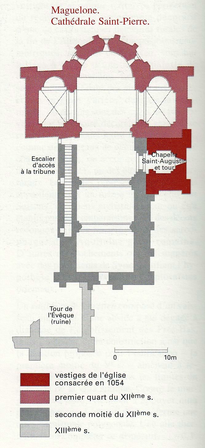 Isolée sur une île, la cathédrale Saint-Pierre-et-Saint-Paul de Maguelone est attestée dans un document de 819 qui en établit les droits et possessions. Elle est rattachée au Saint-Siège en 1085. Cependant, les recherches archéologiques attestent d’une implantation chrétienne dès l’Antiquité tardive, À la fin du XIe siècle et tout au long du XIIe siècle, le site se développe et les édifices sont fortifiés pour défendre sa position et le littoral.