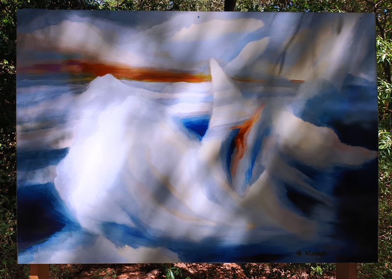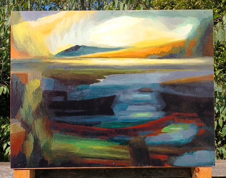 Au cours de ces ballades, elle note à la gouache les atmosphères, les couleurs, les lumières… près d’une centaine de gouaches de petit formats qui deviendront source d’inspiration pour ses grandes marines 40 ans plus tard.