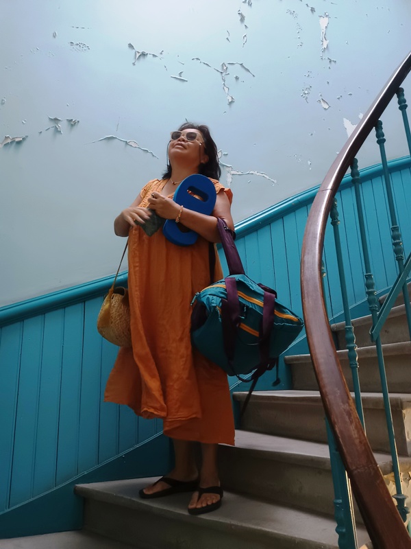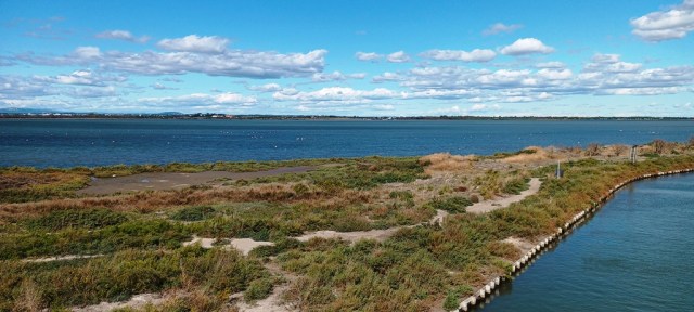 La dernière baignade à Maguelone, je ne sais pas pourquoi mais je sens que c’est là que la magie estivale va se replier sur elle-même. Même si je replonge plus tard dans la mer, un autre jour, ce ne sera plus pareil : la température de mon corps ne sera pas autant en sympathie avec celle de la Méditerranée, l’osmose ne se fera pas aussi parfaitement. Les reflets du ciel parfaitement outremer ondulent sur l’eau parfaitement turquoise, mon regard se dissout dans un camaïeu de bleus.
