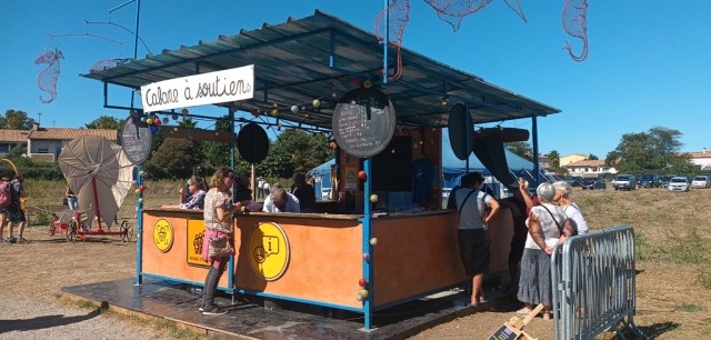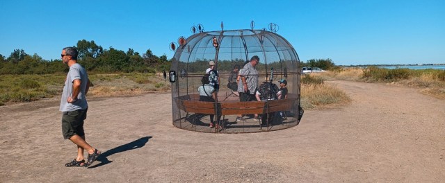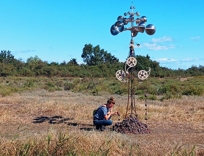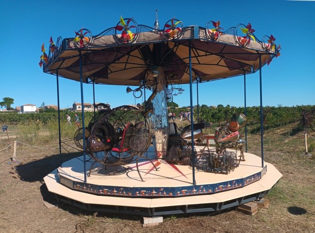 Profitant d’un dimanche estival chaud et ensoleillé, je prends le vélo et m’élance vers la mer. En traversant Villeneuve-lès-Maguelone, je passe devant l’entrée du festival d’art cinétique « Palabrasives 2024 » et décide de rentrer faire un tour. C’est justement le week-end de l’inauguration, belle surprise ! Cette manifestation, en plus d’une exposition sous chapiteau et d’un parcours animé, propose gratuitement des concerts, spectacles ou encore du cinéma, ainsi qu’un forum scientifique et citoyen autour de la question « Comment vivre sur des territoires traversés par le dérèglement climatique ? », thème de cette session 2024.