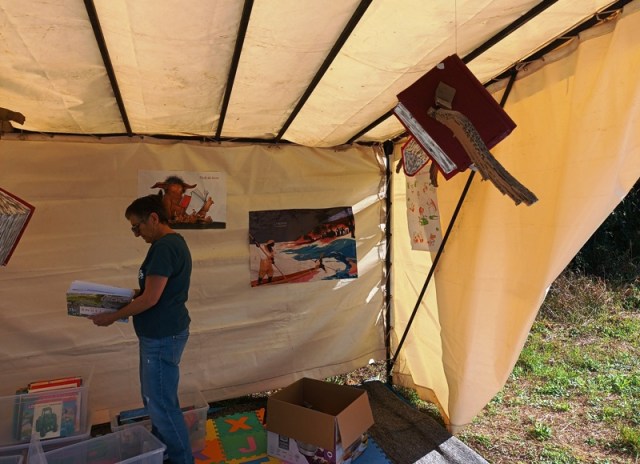 Je suis retourné sur le lieu le jour le la clôture pour voir l’exposition sous chapiteau et ai bénéficié d’une visite guidée par deux membres de l’association Avis de Chantier, dont Marie-Pierre la présidente. Ce sera l’occasion d’une suite à cet article, car il y avait de nombreuses œuvres.