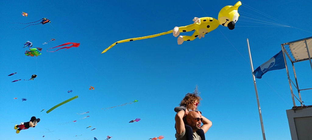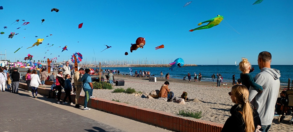 Du vendredi 4 Octobre au dimanche 6 Octobre 2024 avait lieu le festival annuel des cerfs-volants à Palavas-les-flots, Sans rien  savoir de cet événement, quelle lumineuse idée j’ai eu d’y passer le samedi, jour de plein soleil et de vent d’ouest modéré.