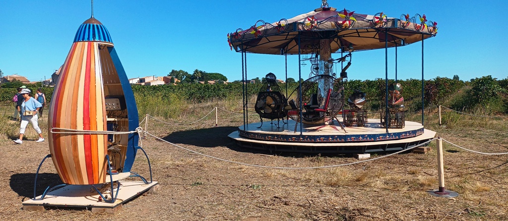 Profitant d’un dimanche estival chaud et ensoleillé, je prends le vélo et m’élance vers la mer. En traversant Villeneuve-lès-Maguelone, je passe devant l’entrée du festival d’art cinétique « Palabrasives 2024 » et décide de rentrer faire un tour. C’est justement le week-end de l’inauguration, belle surprise ! Cette manifestation, en plus d’une exposition sous chapiteau et d’un parcours animé, propose gratuitement des concerts, spectacles ou encore du cinéma, ainsi qu’un forum scientifique et citoyen autour de la question « Comment vivre sur des territoires traversés par le dérèglement climatique ? », thème de cette session 2024.