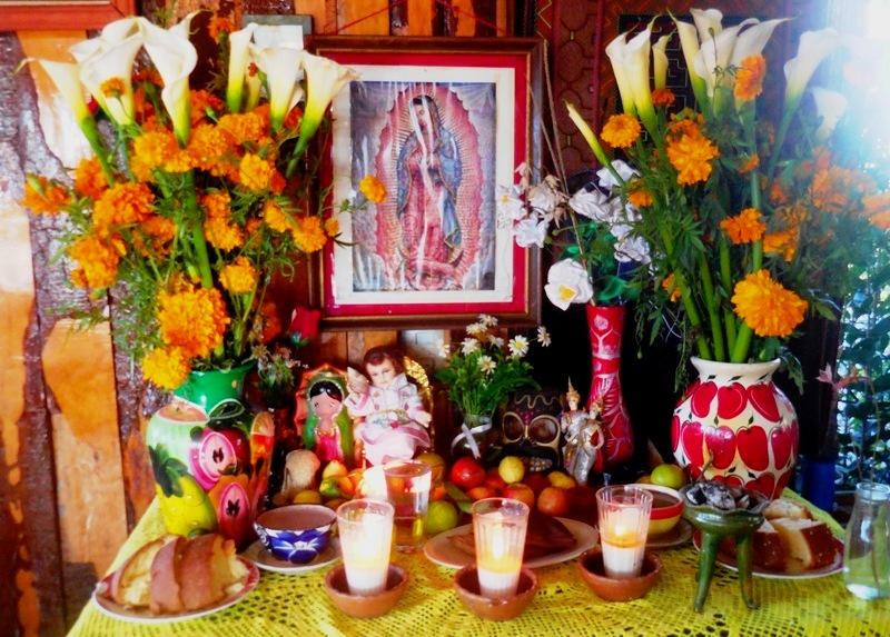 Cette cérémonie de l’équinoxe d’automne 2021 a suivi d’une semaine celle du cacao. Elle s’est déroulée dans le magnifique parc d’un domaine privé aux environs de la ville de Oaxaca, au nord-ouest dans la direction de Santa Maria Atzompa. Invité par la curandera Myriam, je suis venu en transport en commun habillé de clair et avec un bouquet de fleurs comme indiqué. M’étant un peu égaré en chemin, je ne suis arrivé qu’à la fin de la cérémonie. J’ai cependant pu me joindre à ce moment particulier et faire quelques photos sous une lumière sublime. Le petit groupe d’une douzaine de personnes réunissait des Mexicains de provenance diverse : les officiants étaient oaxaqueños, les invités venaient de la capitale ou de Guadalajara.